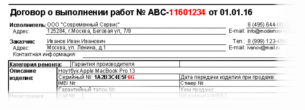 - Из графы договора Серийный №: введите последние два символа серийного номера изделия.